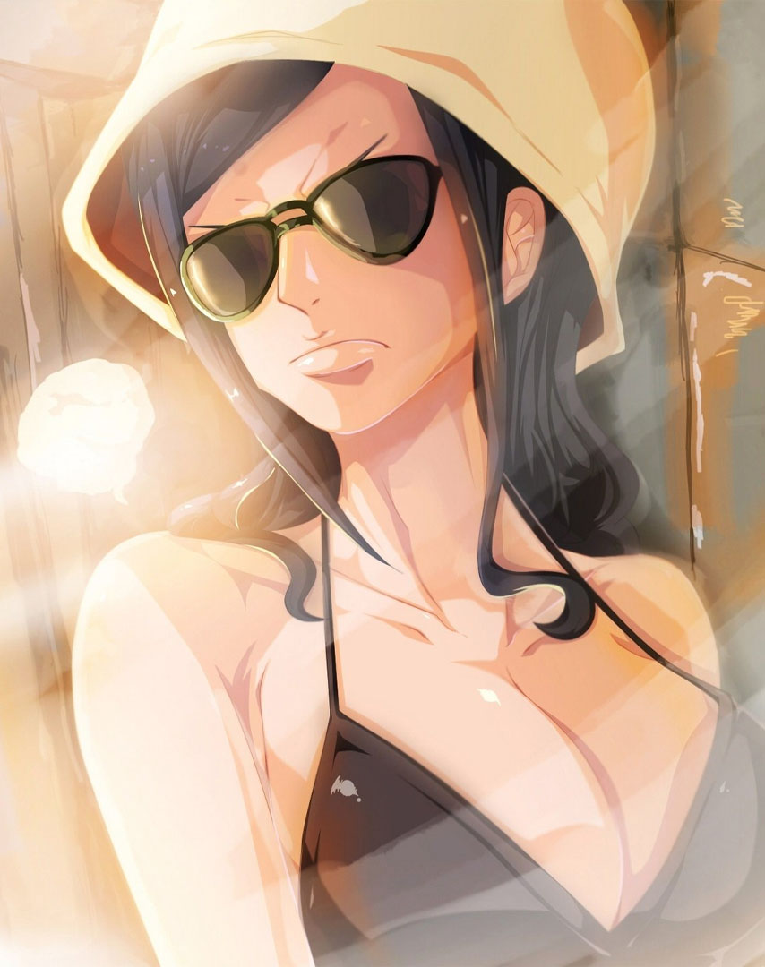 Nico Robin, ook bekend onder haar bijnaam “Devil Child” en het “Light of the Revolution” , is de archeoloog van de Straw Hat Pirates. Ze is het zevende lid van de bemanning en de zesde die zich bij het einde van de Alabasta Arc voegt. Ze verliet tijdelijk de bemanning tijdens de Water 7 Arc, maar voegde zich weer bij de Enies Lobby Arc.